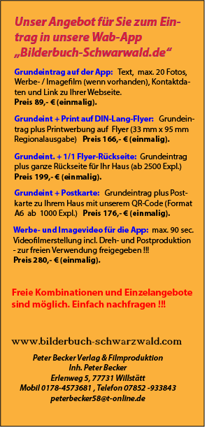 Ihr Eintrag auf unserer Web-App und Bilderbuch-Schwarzwald.com kostet: